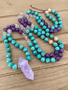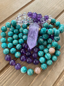 ✨💚Mantra beads include amethyst, clear quartz, and beautiful Sunstone markers. The color combination is definitely a favorite!!