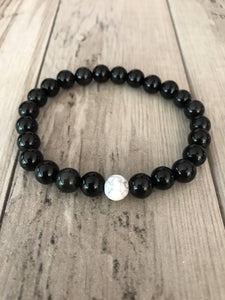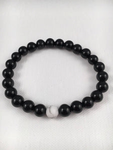 Black obsidian stones are paired with a contrasting howlite stone to make this handsome bracelet. Perfect for stacking or stunning as a single piece.
