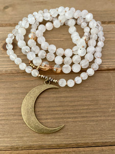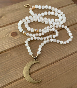 This Mala was originally a full moon design. Moonstone is the stone of divine feminine energy. Filled with Goddess vibes! It’s said to be a great companion stone during pregnancy, childbirth, travel, and any time you want to feel powerful and divine.